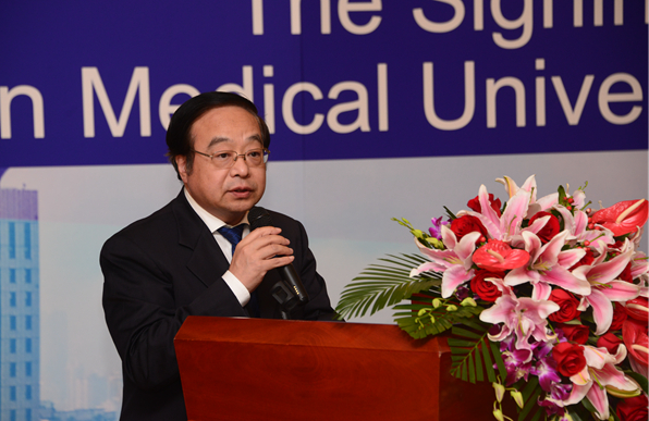 Observed by Mr. Richard Cowin, First Secretary of the British Embassy in China; Mr. Jianqing Zhang, Director, Department of International Exchange of Tianjin Municipal Education Commission; Prof. Chunshui Yu, Vice President of Tianjin Medical University; Mrs. Lijun Zhang, Director, Department of International Exchange & Cooperation, Tianjin Medical University and the leaders and directors of TMUCIH, Prof. Ping Wang, the president of TMUCIH and Prof. Tony Ng, Fellow of the Academy of Medical Sciences; Head of School of Cancer and Pharmaceutical Sciences, King’s College London signed the MOU between the two institutes. Both sides intend to combine forces and work together to advance cancer research and to facilitate joint education and training programs in cancer care and research.