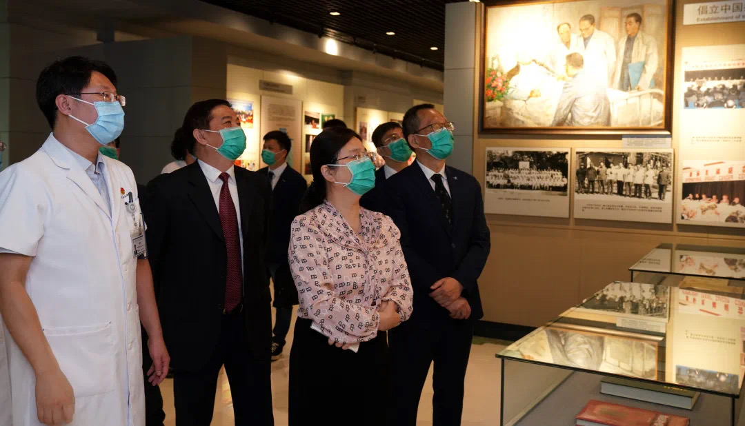 After the signing ceremony, the Jiangxi Cancer Hospital delegates visited the hospital historical museum so as to gain an in-depth understanding of the development process of our hospital.